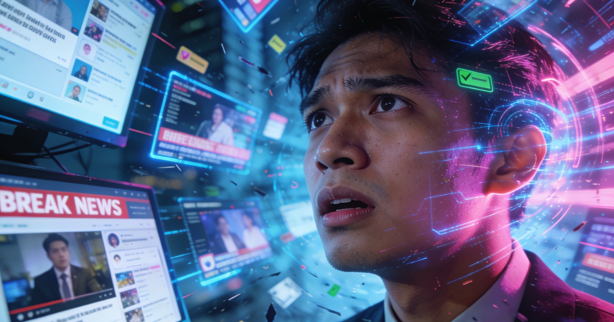 Ilustrasi pengguna media sosial Indonesia yang terpapar berbagai konten digital dalam satu waktu.