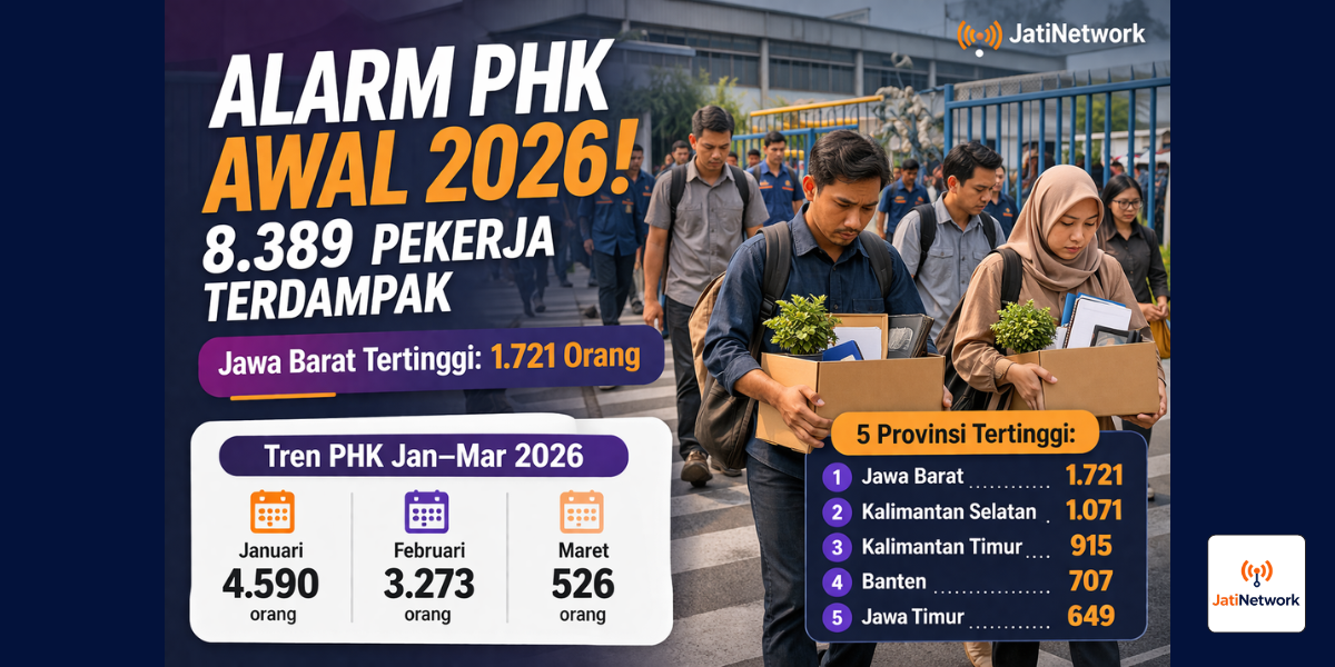 JatiNetwork.Com – Gelombang pemutusan hubungan kerja (PHK) masih menjadi perhatian serius di awal tahun 2026. Kementerian Ketenagakerjaan (Kemnaker) mencatat total PHK secara kumulatif sejak Januari hingga Maret mencapai 8.389 orang.