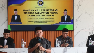 Bupati Sumedang beri pesan spiritual kepada calon jemaah haji saat manasik.